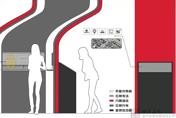 母嬰服務(wù)區(qū)設(shè)有哺乳長(zhǎng)椅,折疊餐桌,溫奶器,嬰兒臨時(shí)休息床,臨時(shí)儲(chǔ)物柜等母嬰服務(wù)設(shè)施,該空間為哺乳期的女性提供了人性化的私密空間,同時(shí)考慮到了孩子哺乳后會(huì)自然進(jìn)入睡眠的狀態(tài),特為其設(shè)置臨時(shí)休息床,減輕了母親的擔(dān)憂以及顧慮;同時(shí),該空間設(shè)有便民輪椅,與殘?jiān)袘?yīng)急衛(wèi)生間形成系統(tǒng),方便老弱病殘?jiān)惺褂谩?/span>