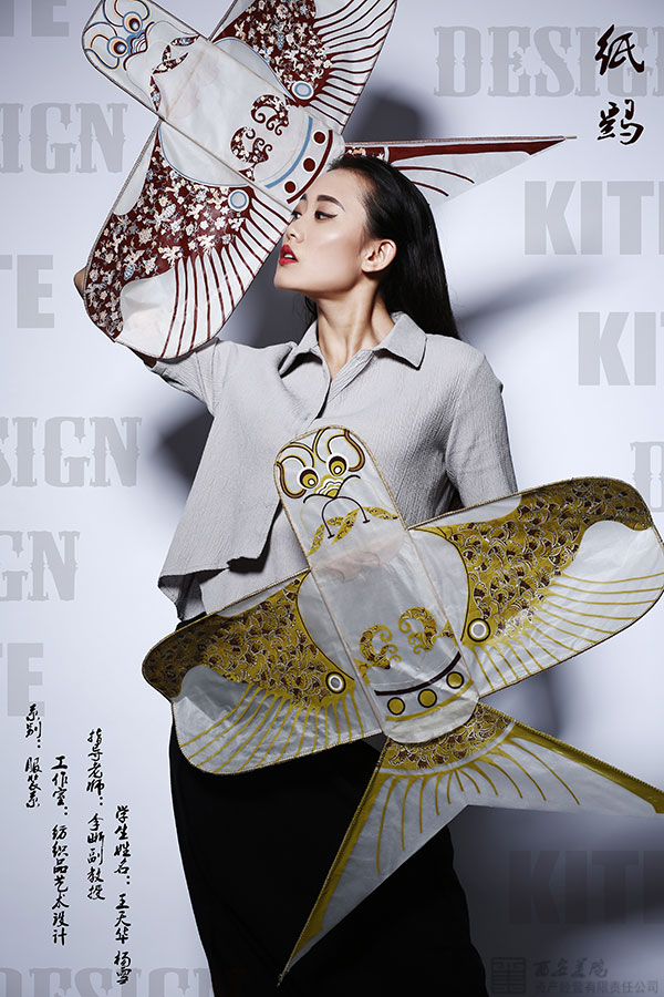 ↓設(shè)計(jì)師:王天華、楊雪,作品名稱《紙鳶》,指導(dǎo)教師:李晰(副教授)