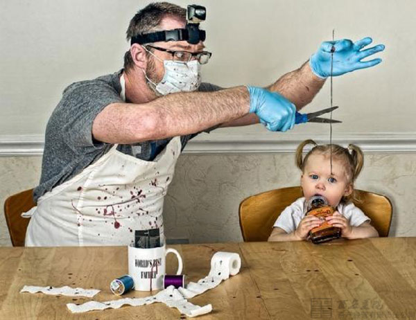 有位「人老心不老」的逗趣攝影師Dave Engledow,自詡為「世上最棒的爸爸」(World's Best Father),和女兒相處的每一天,都用攝影的方式紀(jì)錄,并且經(jīng)過巧妙安排,成為一張張帶點(diǎn)惡搞、無奈與珍惜的歡樂攝影,不過隨著女兒越長越大,作品中也逐漸能看出攝影師為人父母的反思與價值觀。